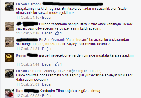 '' En Son Osmanlı '' isimli Facebook hesabı, Yasin Gündoğdu adlı hocanın şahsi ve gerçek profilidir.