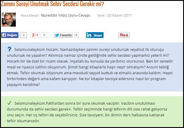Mesela kendisine sorulan sorularda yönlendirmeler yapıyor. Ehli Sünnet çizgisinden sapmış, ilmi olmadığı halde bir eser(!) koymuş kişilere de yönlendirdiğini görüyoruz.