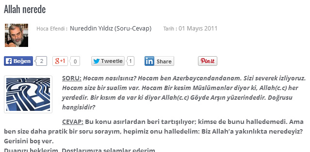 Allah’ın mekandan münezzeh olduğunu, O’na yer, mekan isnat etmenin yanlış olduğunu söylemek bu kadar zor mu?