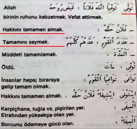 Aynı şey işte tam burada da geçerlidir. “teveffa” kelimesi çeşitli manalara gelmektedir. İşte basit bir lügatten örnek: